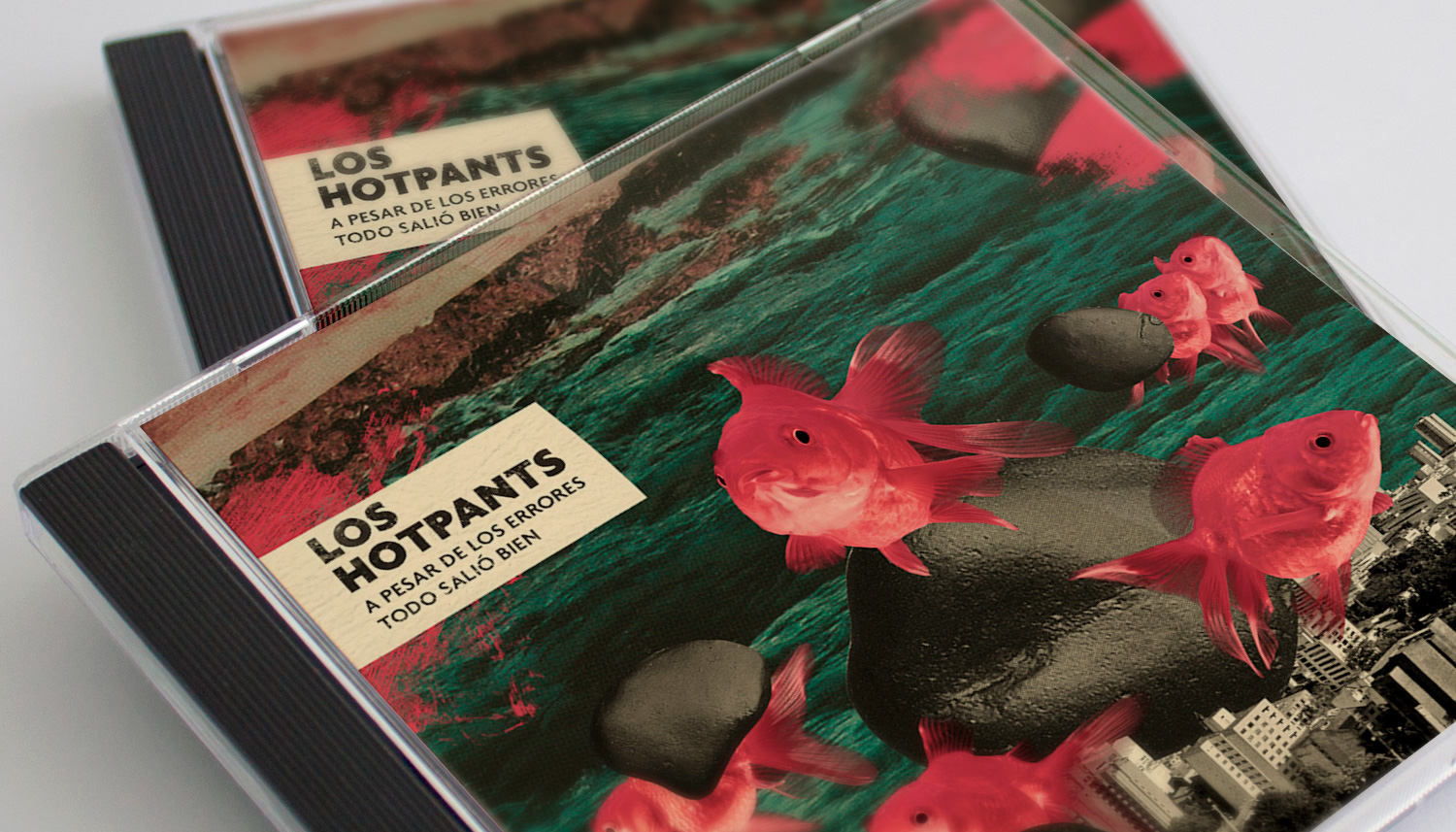 «A pesar de los errores todo salió bien» es el segundo album de la agrupación caleña de rock indi Los Hotpants. El diseño es un conjunto de collages de técnica mixta (elementos y procesos análogos, con edición digital), que muestra una pecera en la que se ha sumergido algo y se le ha puesto piedras para que no salga a flote, en este caso la ciudad (Cali), que es un símbolo del contexto de la banda, de la vida cotidiana de sus miembros. Es el transcurso de la vida con el peso de los problemas a cuestas.